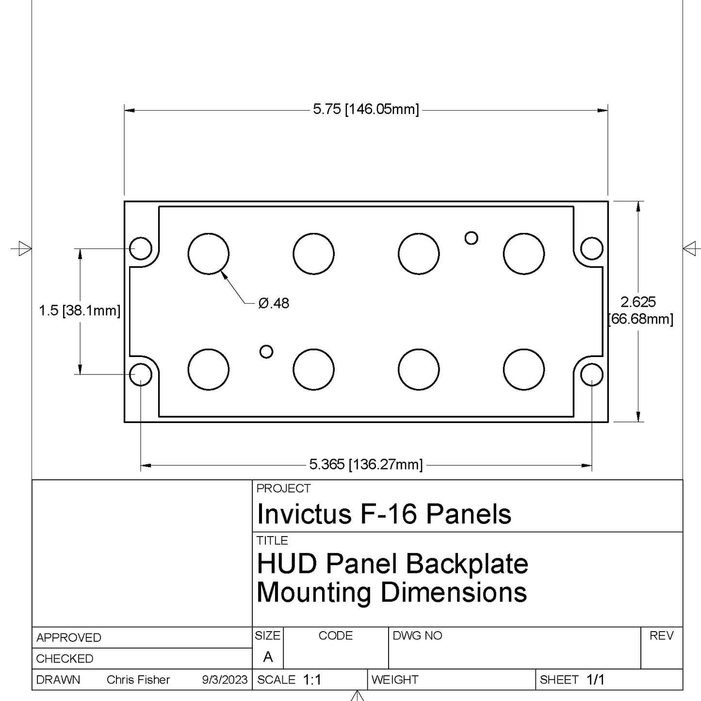 All of our cockpit panels are made true to the specifications outlined in Military Standards MS25212C. Most panels are 5.75" wide (146.05 mm) and the height is measured in multiples of .375" (9.53mm). Refer to the attached datasheet for specifics.